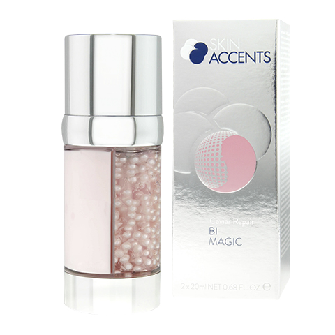 Дуэт Bi-Magic Firm & Lift (сыворотка и крем цвета спелого абрикоса) предназначен для кожи со сниженным тургором. Обеспечивает заметный лифтинг-эффект, разглаживает морщины, повышает эластичность и упругость кожи. Подходит для кожи любого типа. Специальная упаковка с двумя дозаторами позволяет использовать каждое средство отдельно: можно выбрать более насыщенный липидами крем или богатую увлажняющими компонентами сыворотку, в зависимости от индивидуальных потребностей кожи.  Инновация: комплексный омолаживающий уход за кожей «2-в-1» с интенсивным укрепляющим действием и выраженным эффектом лифтинга.  В оригинальном двухкамерном флаконе находятся два дополняющих друг друга продукта: сыворотка «Магические сферы», заключенная в драгоценные жемчужины, и роскошный anti-age крем.  Сыворотка в жемчужинах содержит гиалуроновую кислоту и экстракт листьев новозеландского папоротника, которые регенерируют, укрепляют и омолаживают кожу. Крем дополняет и усиливает действие сыворотки: кокосовое масло и масло Shea восп
